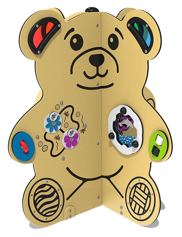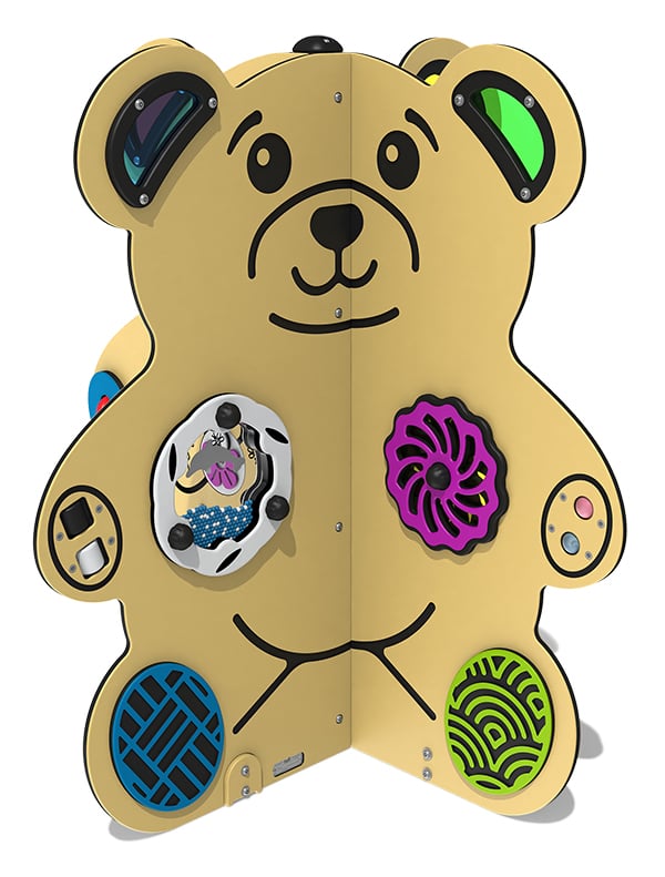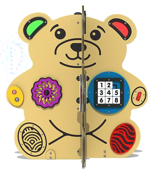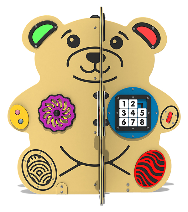 The Teddy Bear Activity Station is a bright, colorful and inclusive play station designed to engage children’s senses through a variety of fun activities. Compact full of features, it stimulates touch, sight, and sound with interactive elements.